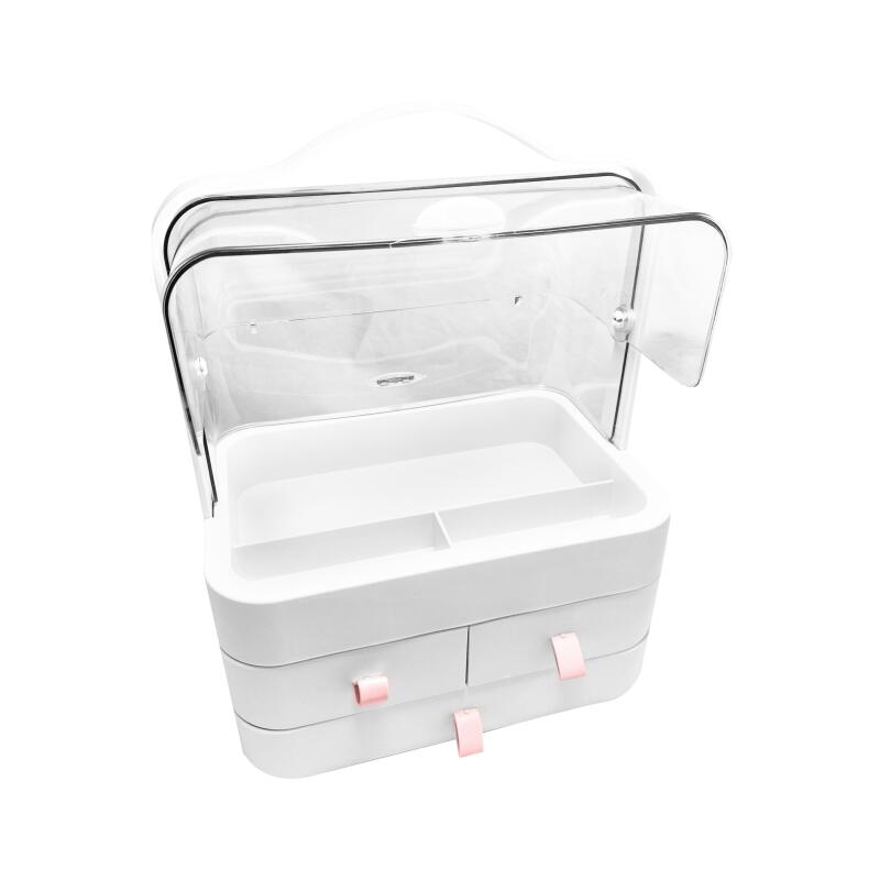 Con un diseño moderno y funcional, este organizador cuenta con múltiples compartimentos y cajones que facilitan el almacenamiento y la accesibilidad a tus productos favoritos. Su acabado elegante y minimalista se adapta a cualquier estilo de decoración, convirtiéndolo en un accesorio tanto práctico como decorativo para tu tocador o baño.