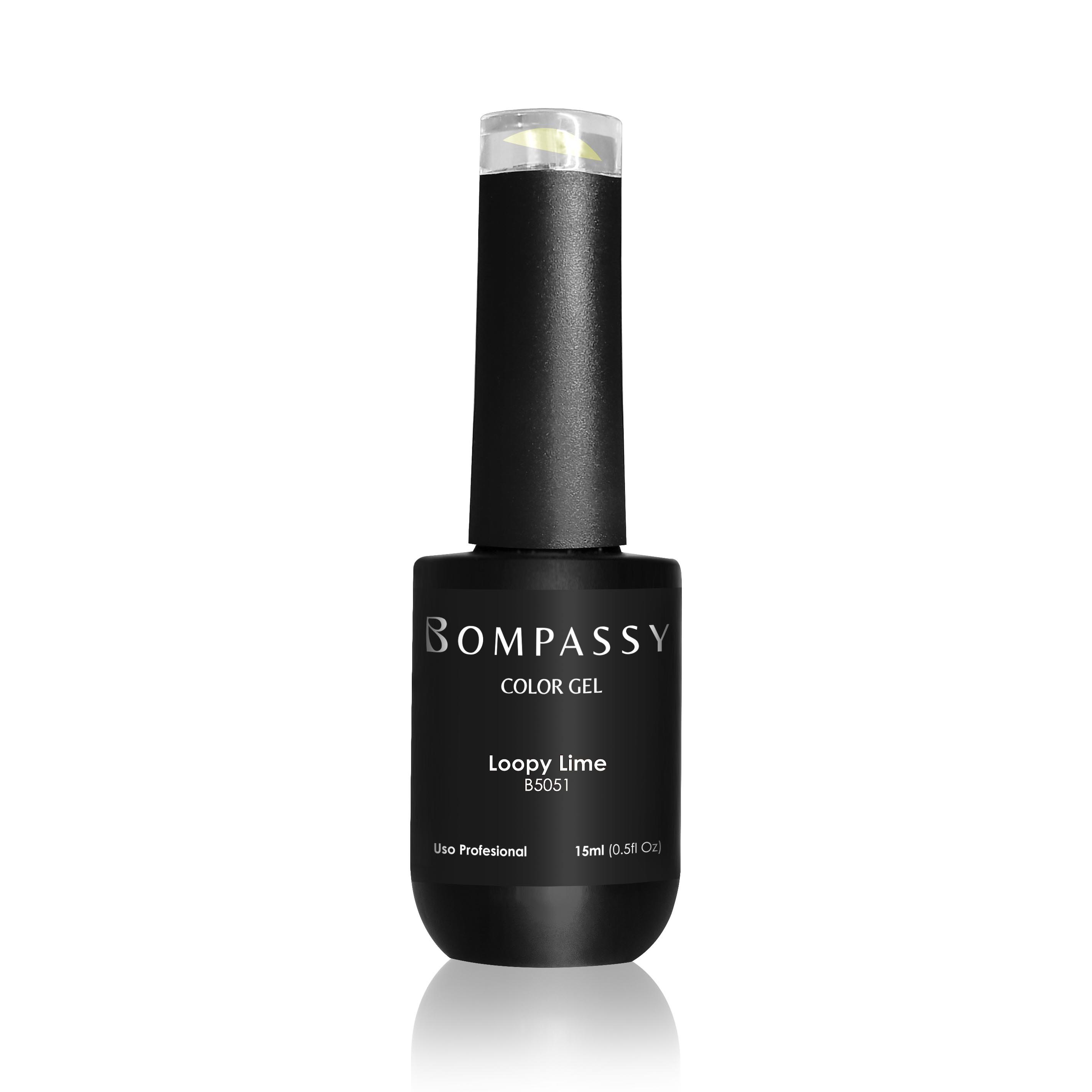 Bompassy Esmalte Semipermanente Loopy Lime. Aplicado como un esmalte, pero curado con luz LED o UV, el esmalte proporciona un alto brillo y una larga duración.