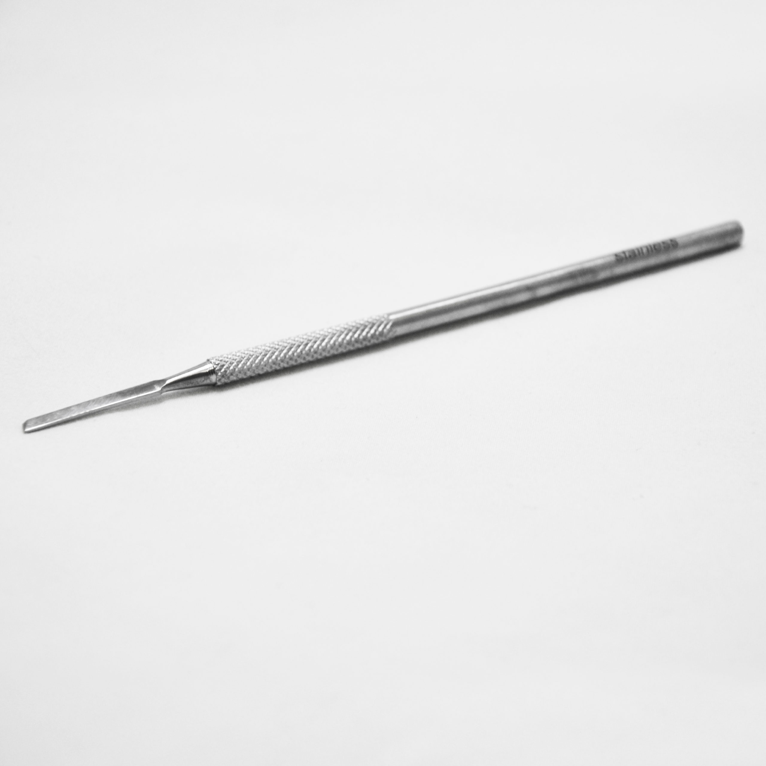 Beneficios: Punta oblicua con filo de 2 mm. Cuenta con un mango ergonómico antideslizante brinda un mayor agarre. Hecho de acero inoxidable. Esterilizable.