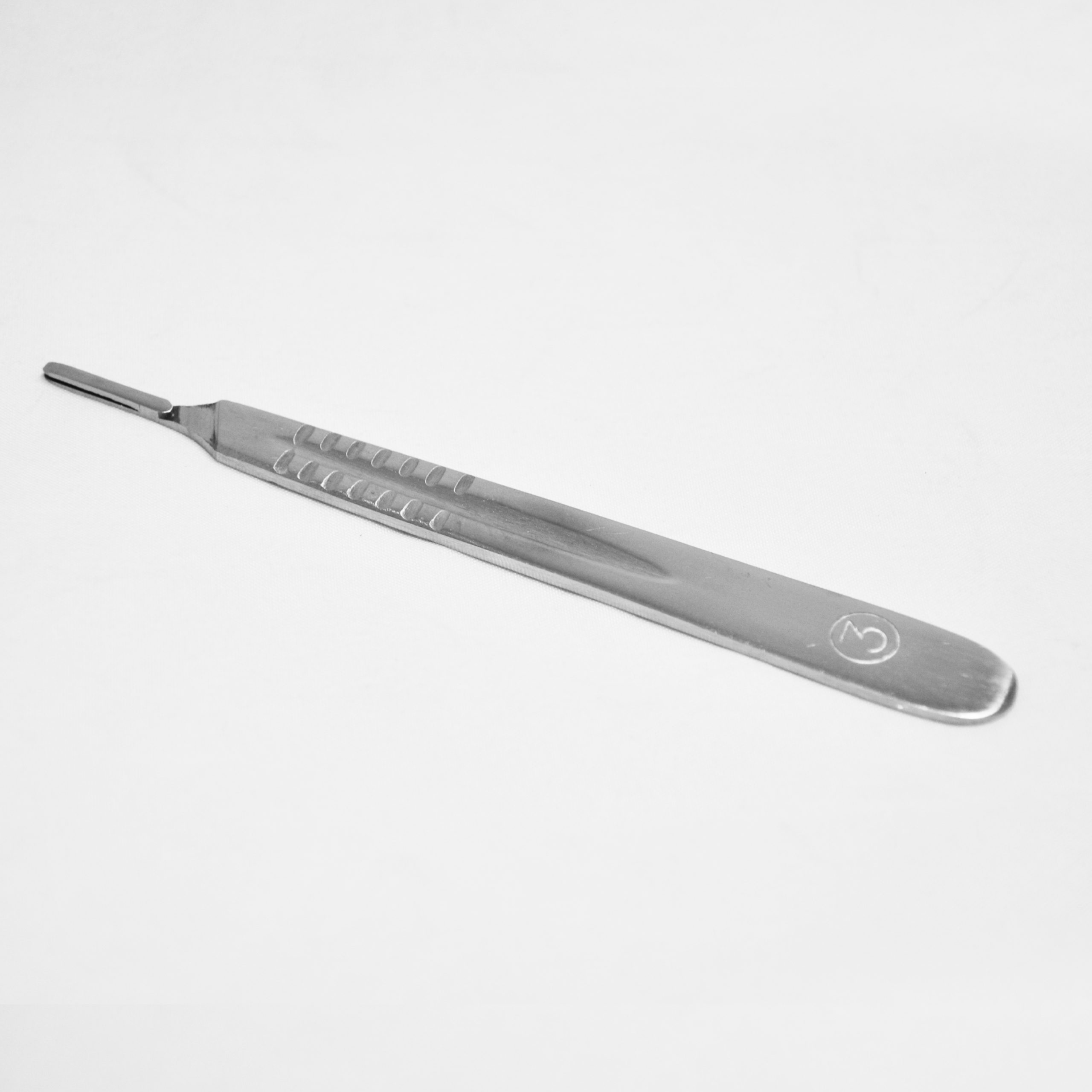 Mango de bisturí Nº 3 hecho de acero inoxidable. Envasados individualmente. Se adapta a cuchillas 10 – 15.