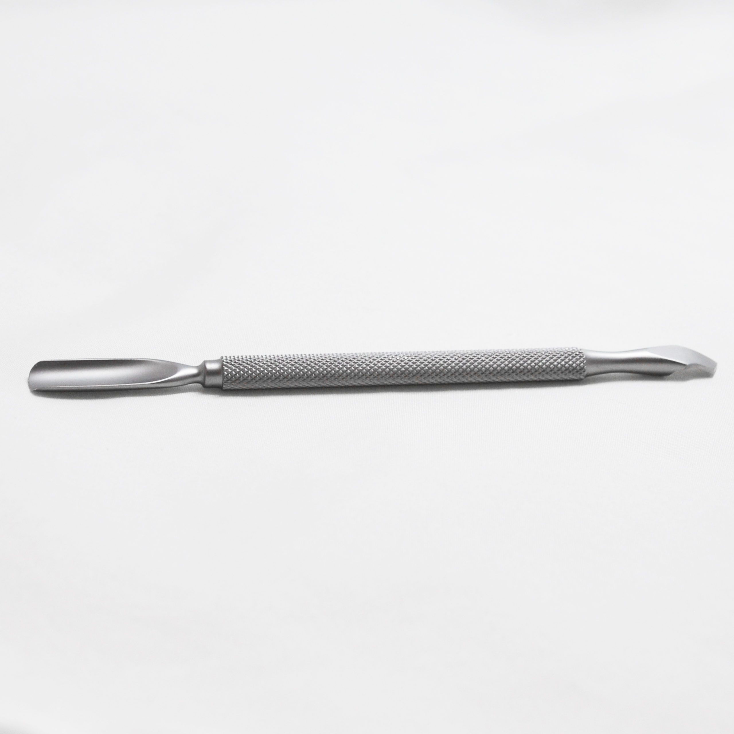 Empujador de cutículas y raspador de acero para empujar y remover las cutículas. Uso manicura, pedicura y podología. Apto para esterilizador.