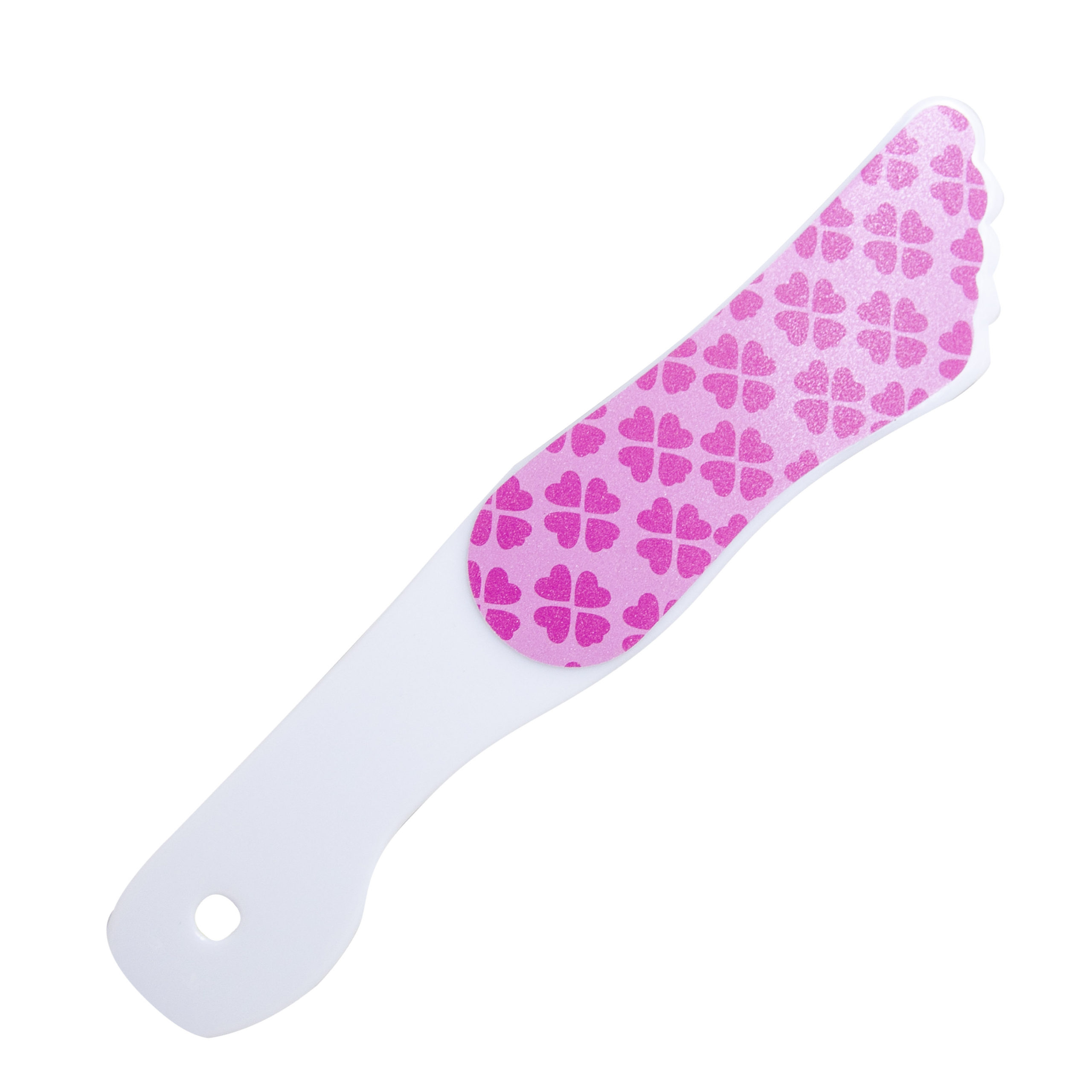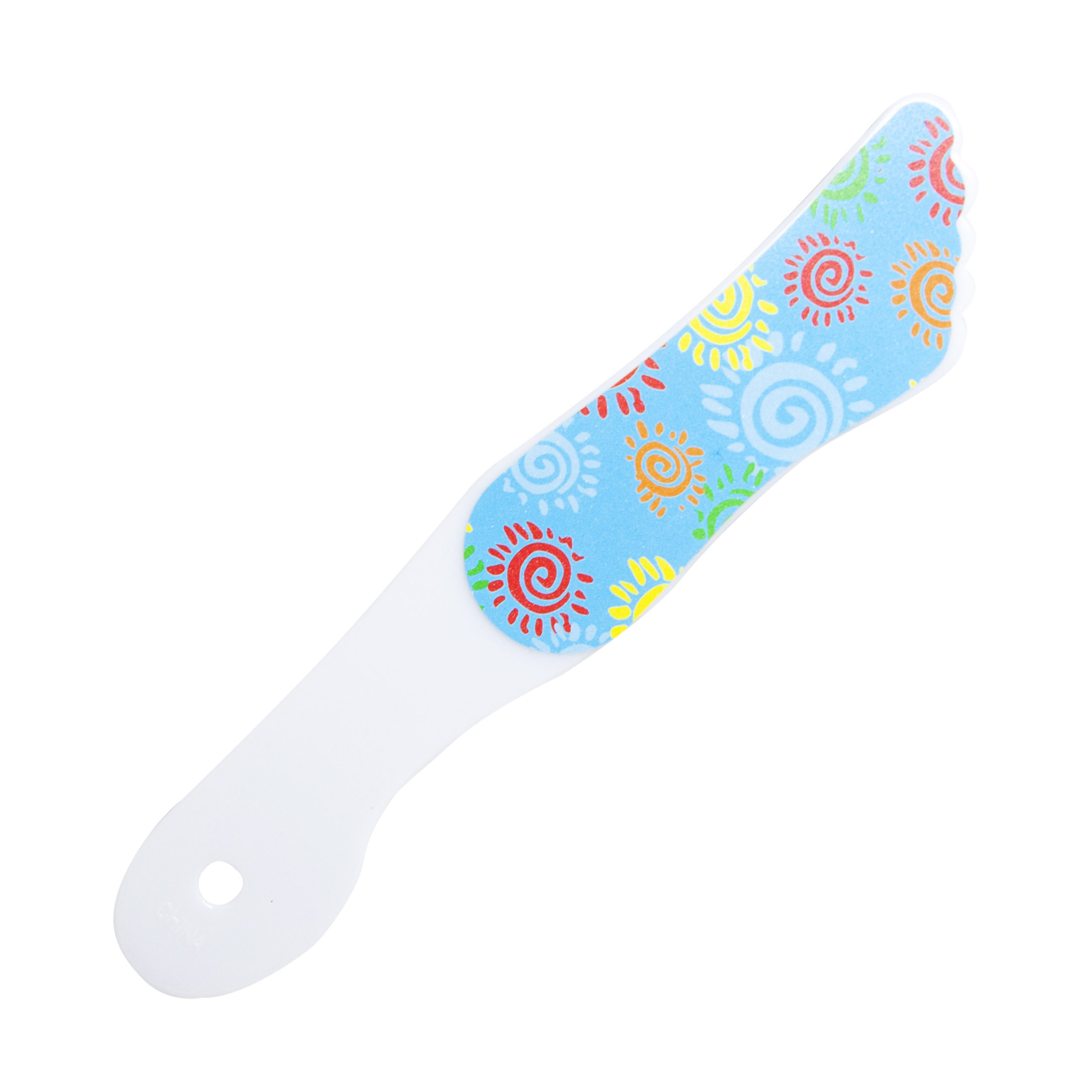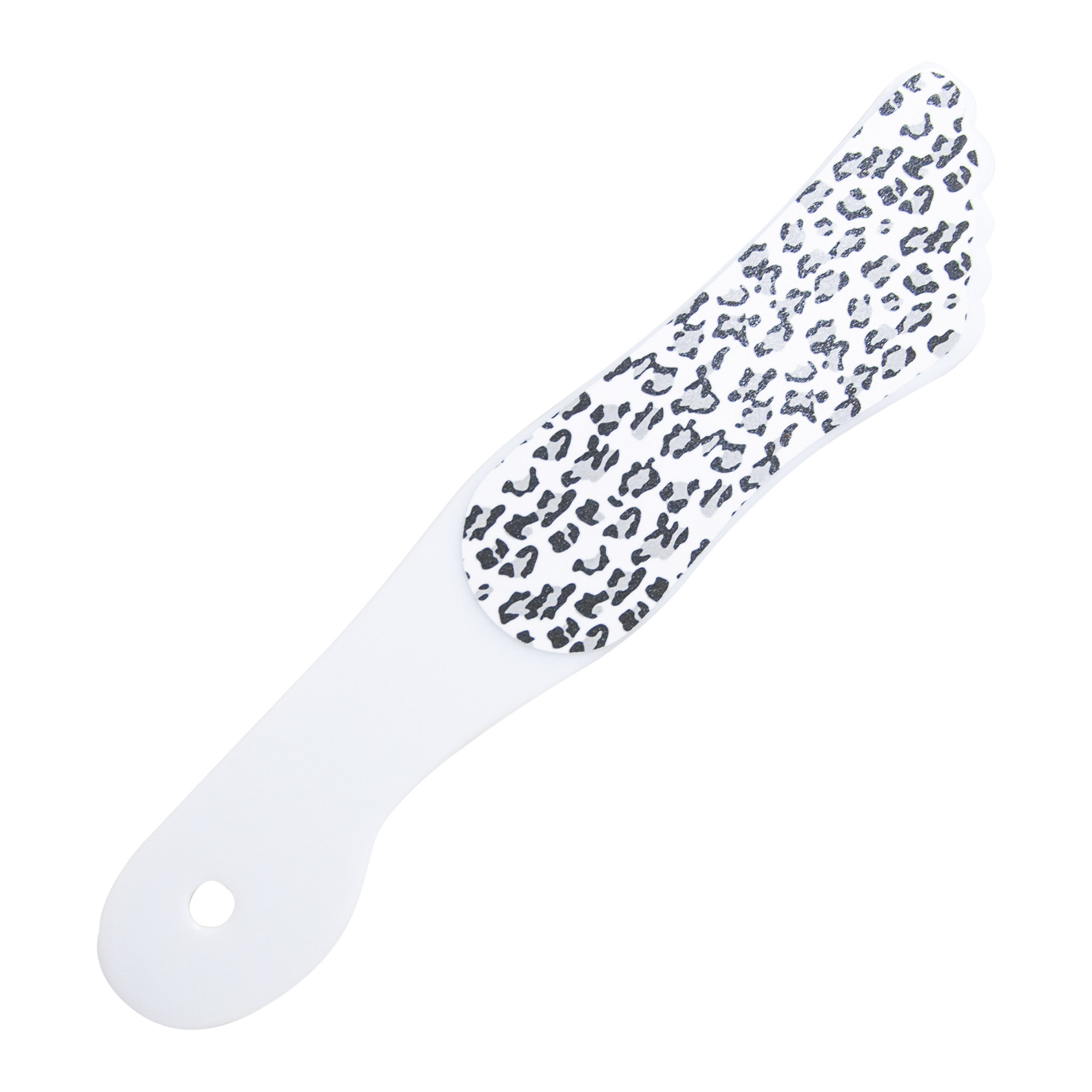 Escofina con diseño de piecito doble cara con diseños surtidos, mango de acrílico blanco. El lado grueso elimina la piel muerta; el lado fino mejora la piel de los pies.