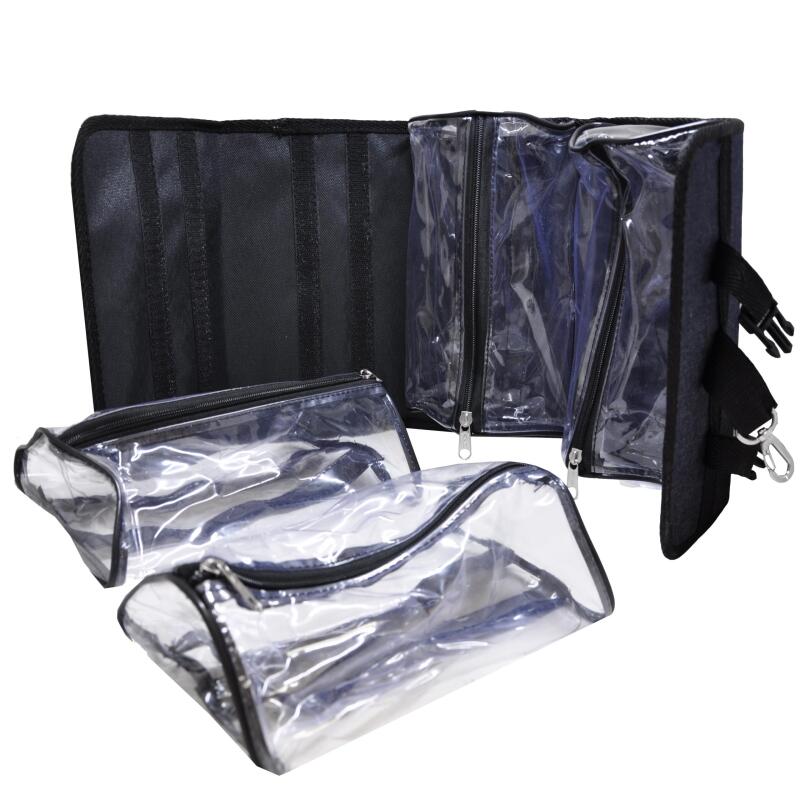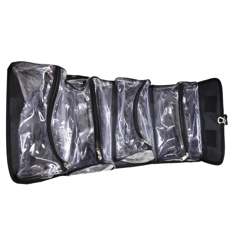 El maletín con 4 portacosméticos transparentes desmontables es el accesorio perfecto para mantener tus cosméticos organizados y al alcance de la mano.