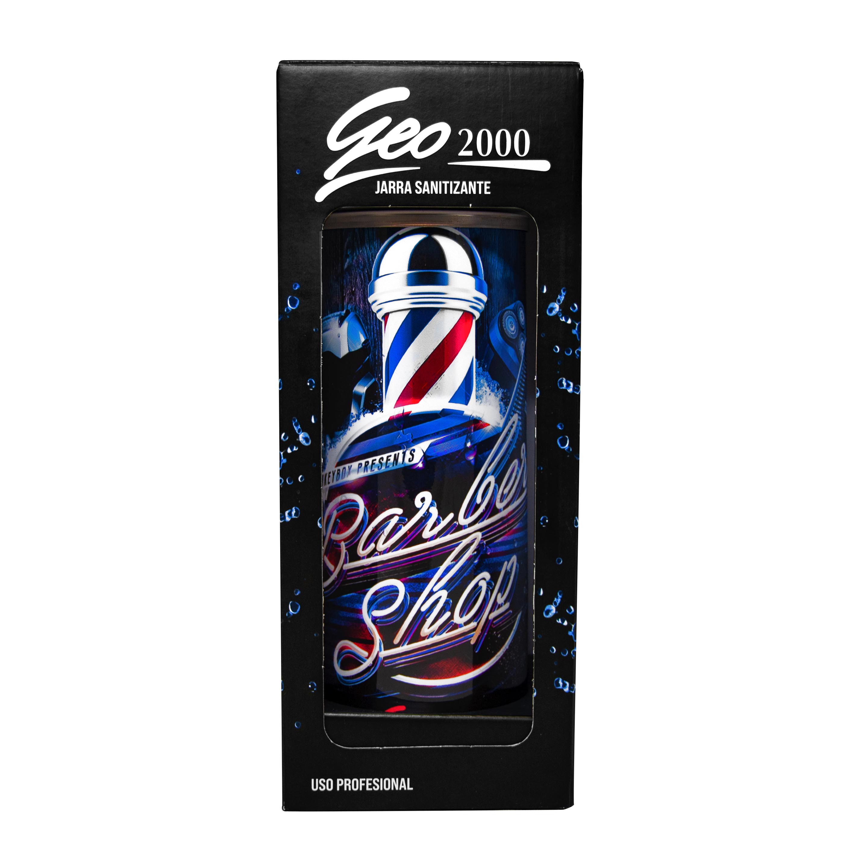La Jarra Sanitizante Barber Cristal Color de Geotech está fabricada en vidrio transparente con tapa facetada, ideal para desinfectar herramientas de barbería. Su diseño incluye ilustraciones coloridas de barbería que aportan estilo al espacio de trabajo. El cuerpo permite visualizar el contenido y controlar el estado de los utensilios. Es compatible con lociones bactericidas, garantizando limpieza efectiva y segura.