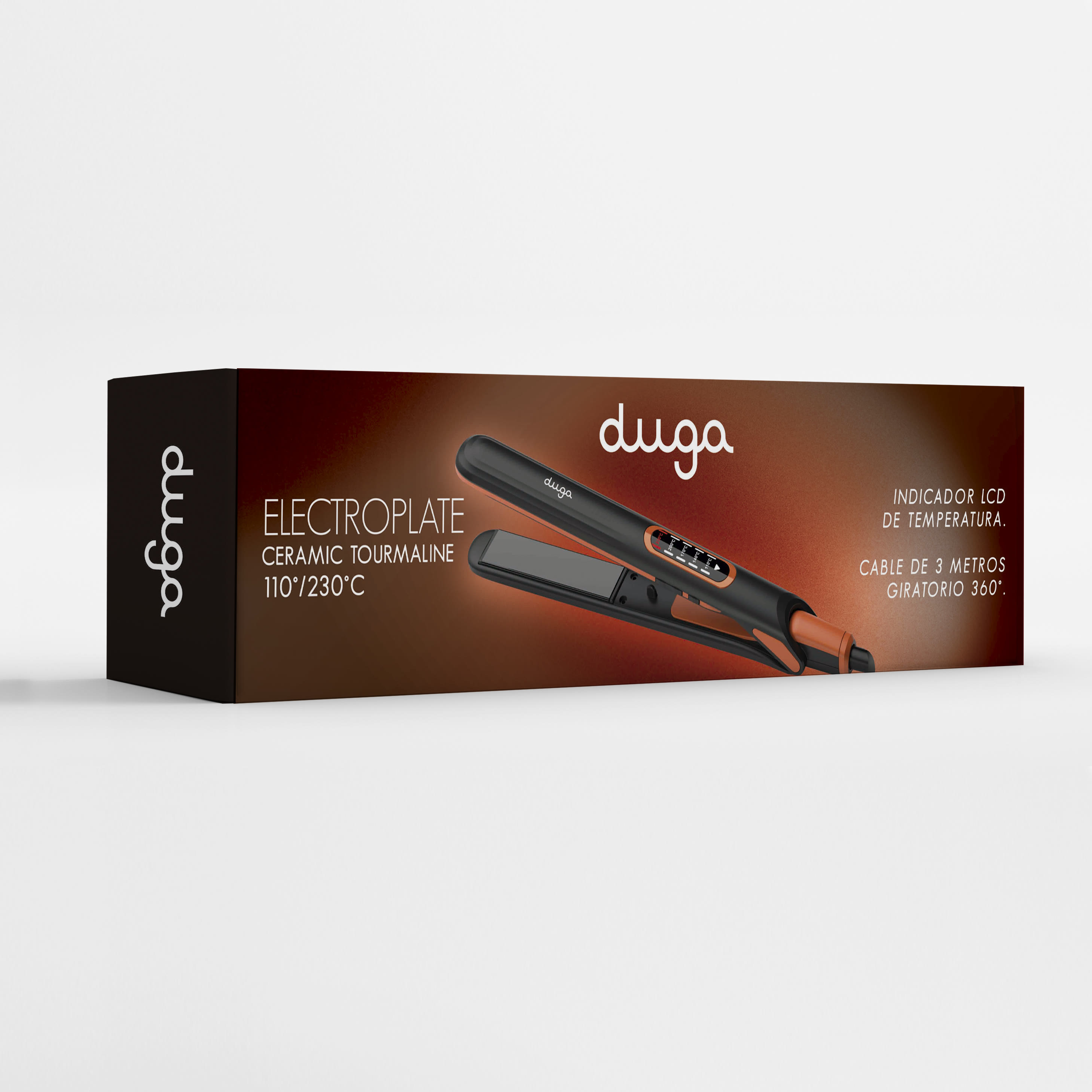 La plancha Duga Electroplate Ceramic Tourmaline es una placa cerámica de tourmalina que calienta entre 110°C y 230°C para lograr un alisado perfecto y duradero. Cuenta con las siguientes características: Indicador LCD de temperatura - Cable giratorio de 3 metros con rotación de 360° - Potencia de 50 watts para obtener resultados profesionales.