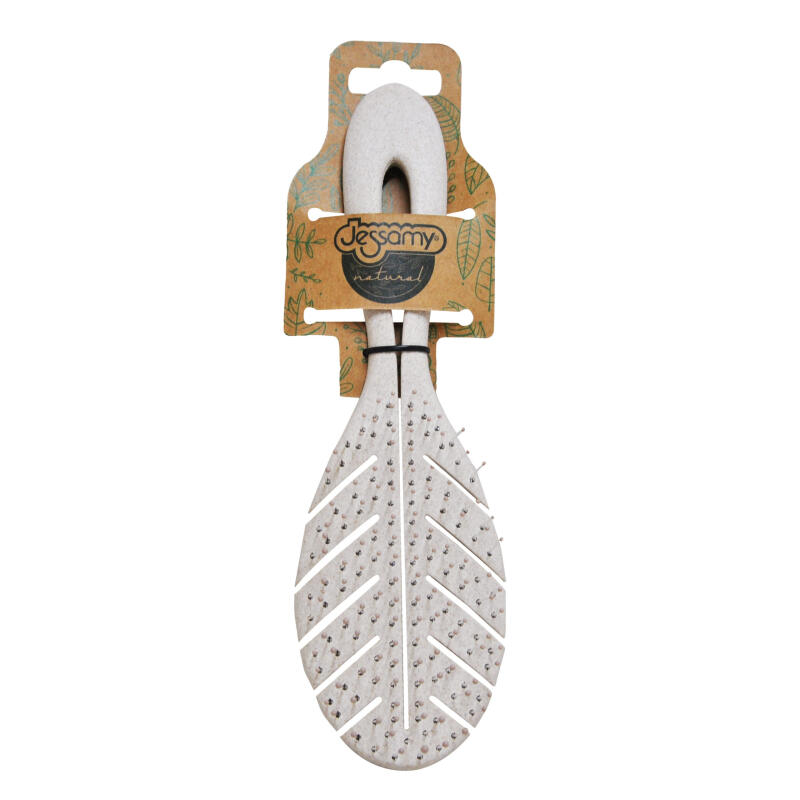 Cepillo Biodegradable con diseño de Hoja, marca Jessamy Natural. El mango está hecho de un almidón de planta natural biodegradable que se descompone de forma natural. Las cerdas exclusivas son suaves y desenreda fácilmente.